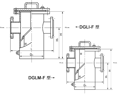 | 1、藍式法蘭連接直通平底式過濾器(DGLI-F型) |